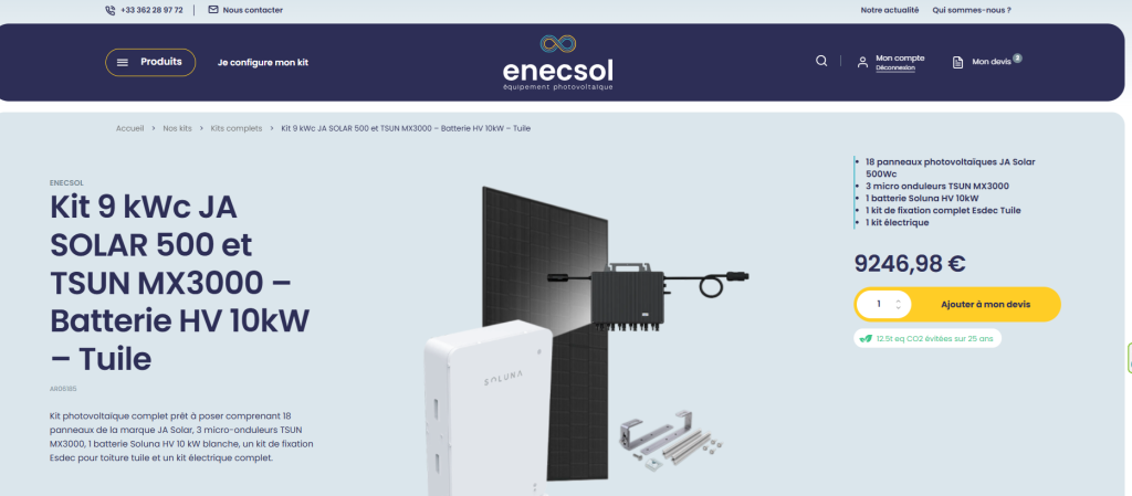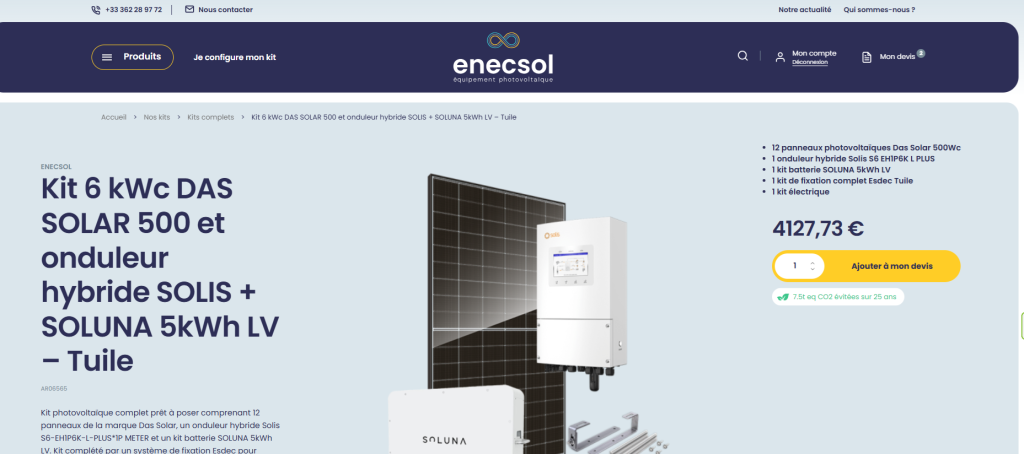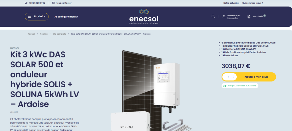 Exemple d’émissions évitées sur les kits complets Enecsol